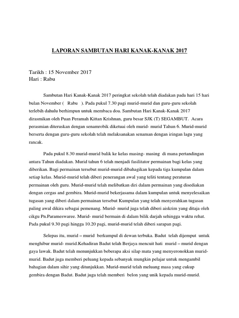 Laporan Sambutan Hari Kanak Pdf